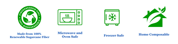 • Made from 100% sugarcane fiber – naturally biodegradable and compostable