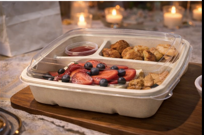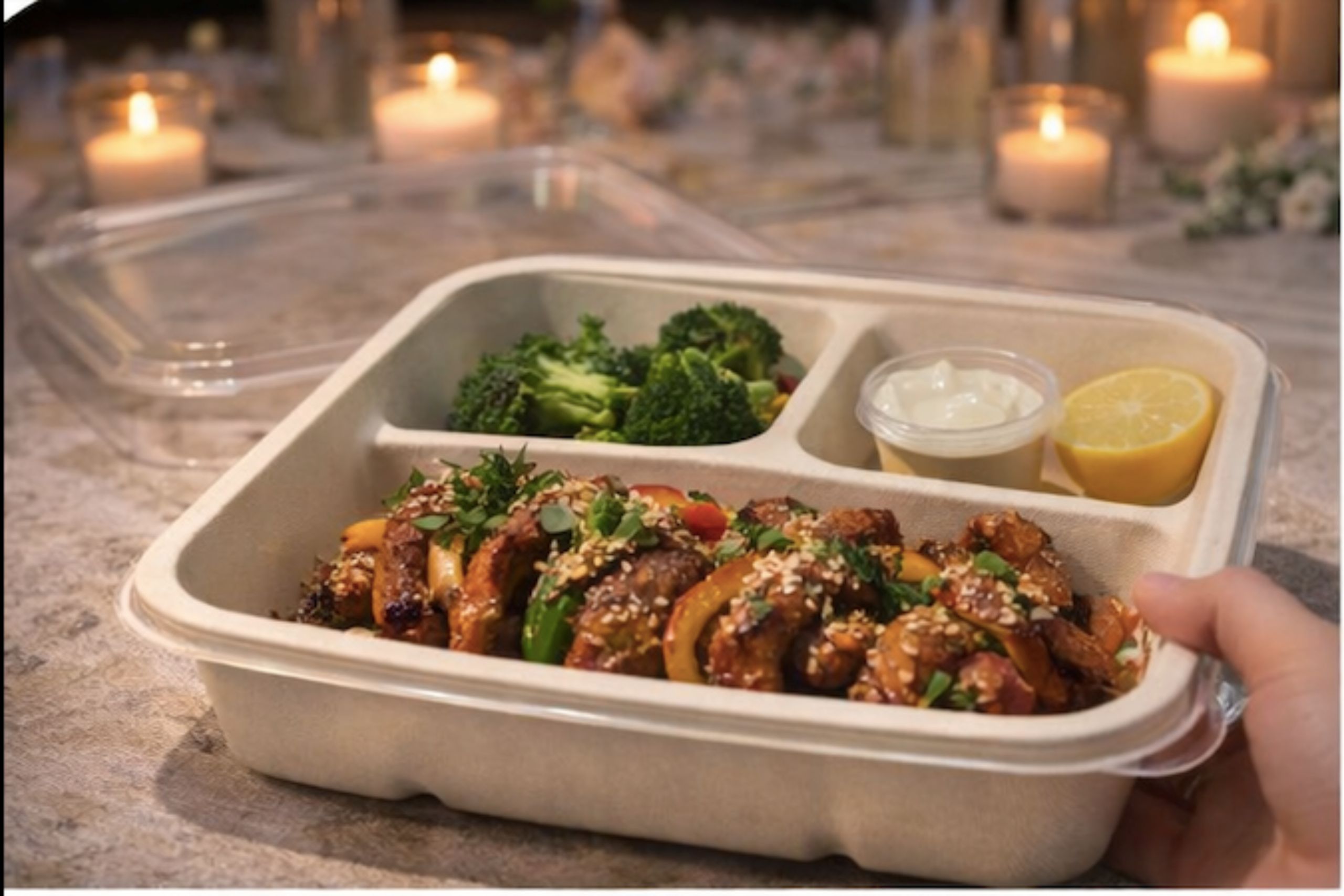 Made from eco-conscious materials, this container is lightweight, sturdy, and easy to handle. Suitable for both hot and cold foods, it offers a practical, hygienic, and sustainable packaging solution—perfect for restaurants, cloud kitchens, caterers, and takeaway services.