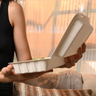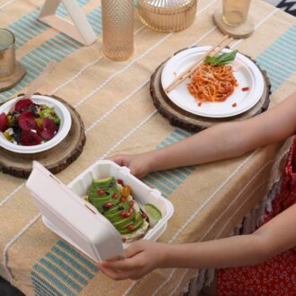Designed for efficiency and built with care for the planet, the GoEco 8×8 3-Compartment Clamshell offers a compact, eco-conscious solution for serving well-balanced meals. Made from natural sugarcane bagasse, this biodegradable clamshell is the perfect alternative to plastic or foam—strong, stylish, and sustainable.